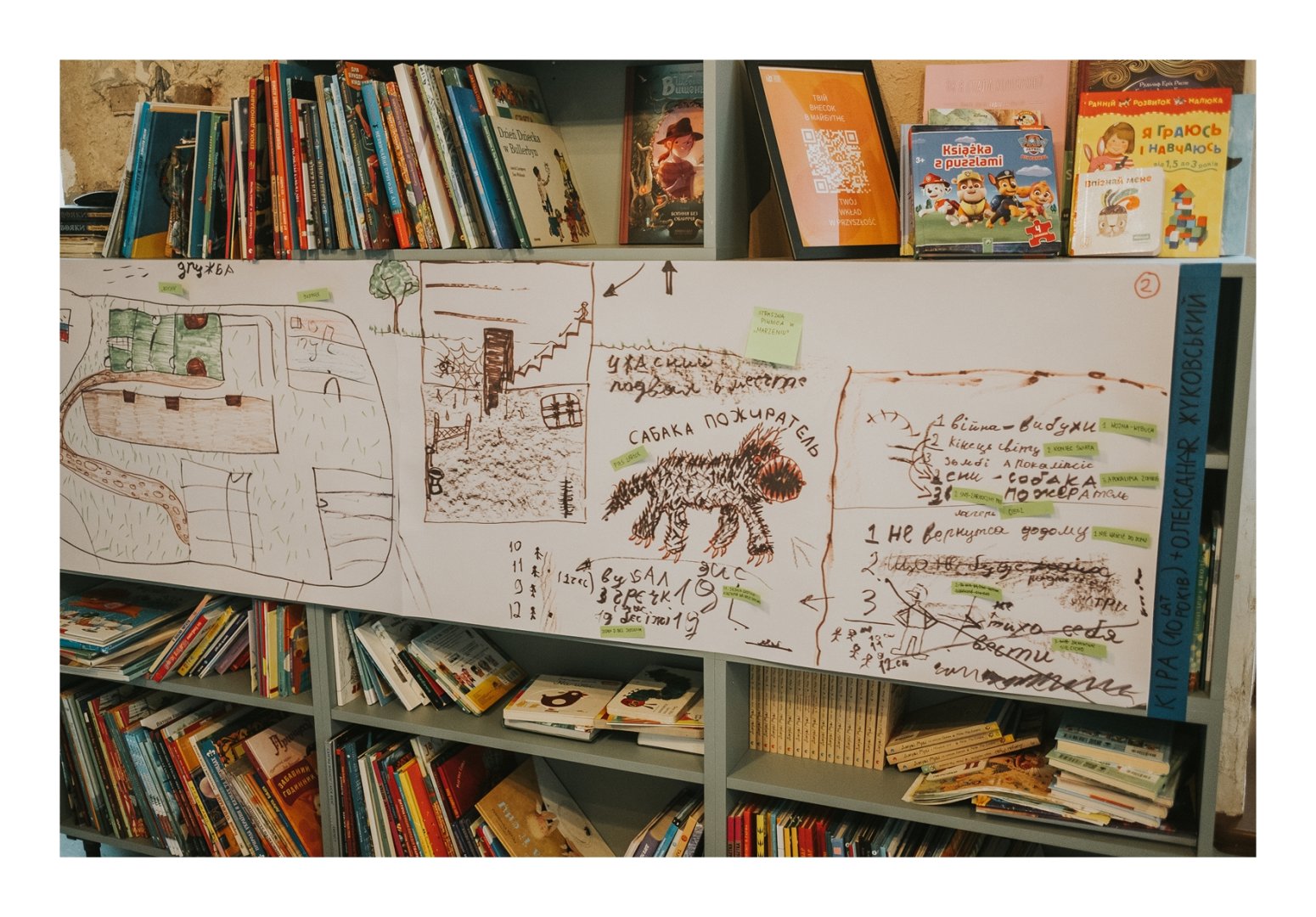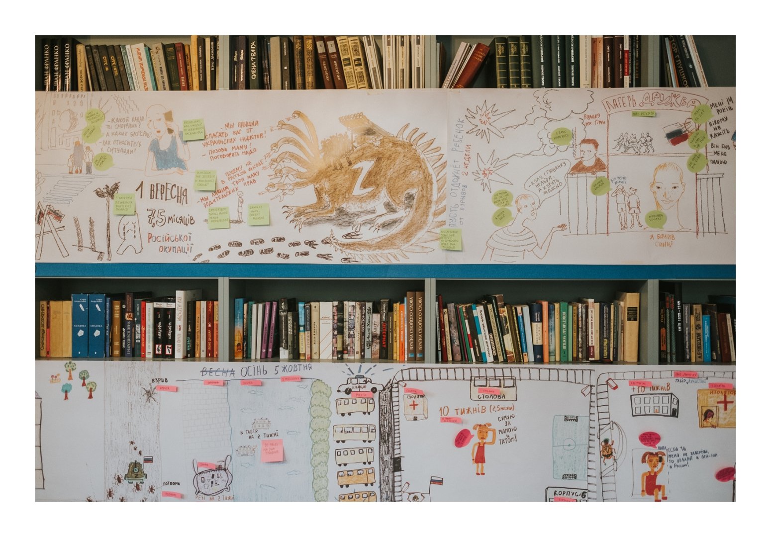 W miniony piątek, 24 października, odbyło się otwarcie wystawy “Niebieski sweter z żółtą dziurą. Prawdziwa historia kłamstwa”. Prezentowane w bibliotece Domu Ukraińskiego prace to zapis doświadczeń dzieci z okupowanych terytoriów Ukrainy. Co najmniej 19 546 ukraińskich dzieci zostało deportowanych lub bezprawnie przesiedlonych do rosyjskich tzw. “obozów reedukacyjnych”. Powstałe przy współpracy z artystami i psychologami rysunki-mapy opowiadają o przymusowych obozach, porwaniach i torturach. Powstanie prac było dla dzieci próbą radzenia sobie z traumą tego doświadczenia.